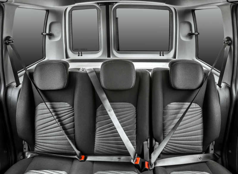 No Fiat Doblò Essence 2021, todos os ocupantes agora tem cinto de três pontos e apoios de cabeça, inclusive no banco traseiro